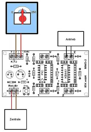 läuft der Motorantrieb, je nach Anschluß der Kabel rechts oder links herum. Bei