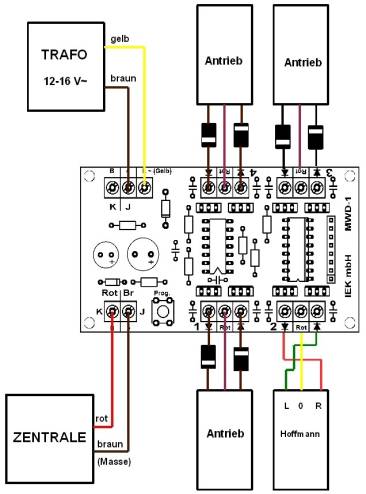 ausschließlich Motorweichenantriebe der Fa. Conrad*/Hoffmann* angeschlossen werden. Weitere auf dem Markt